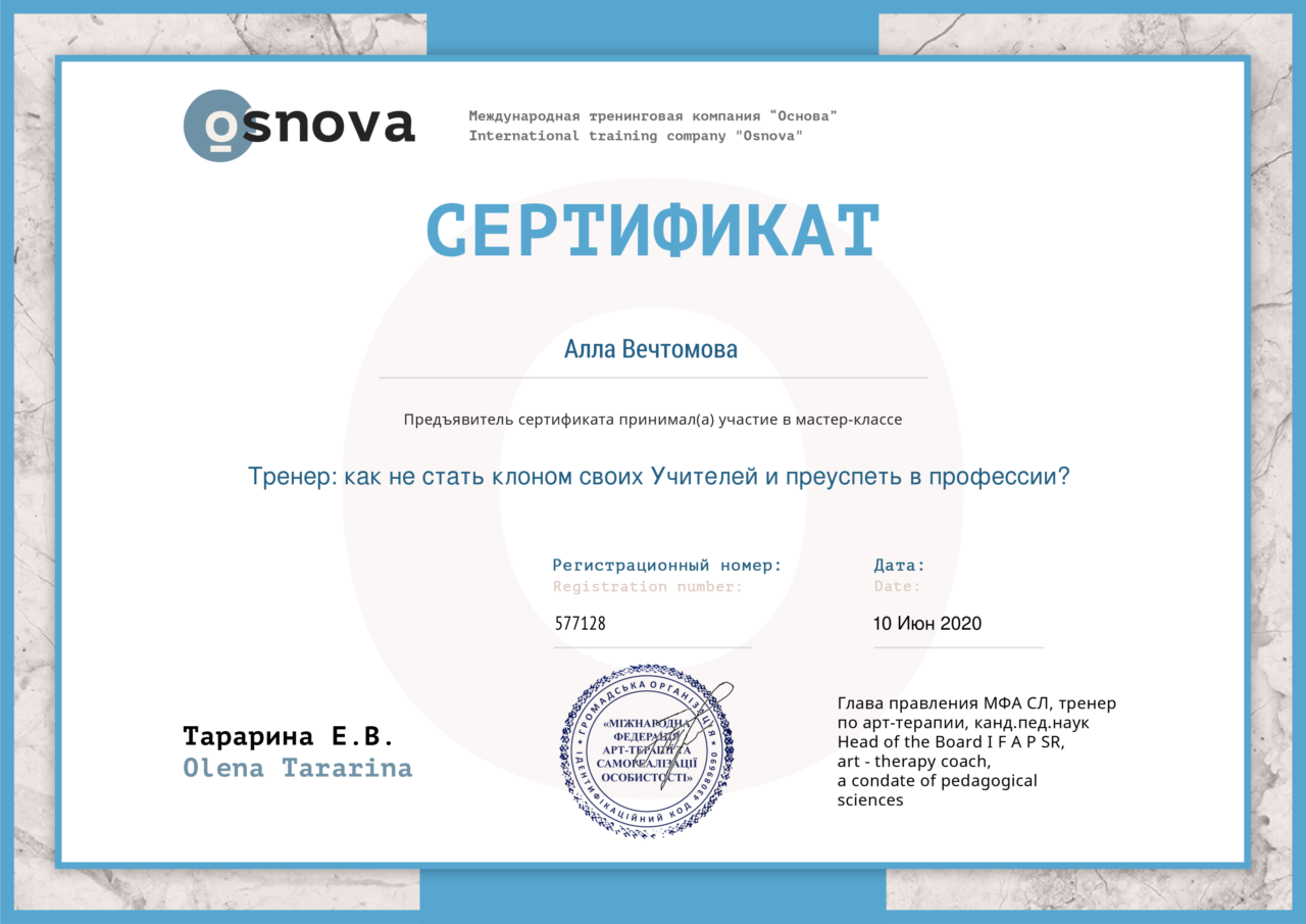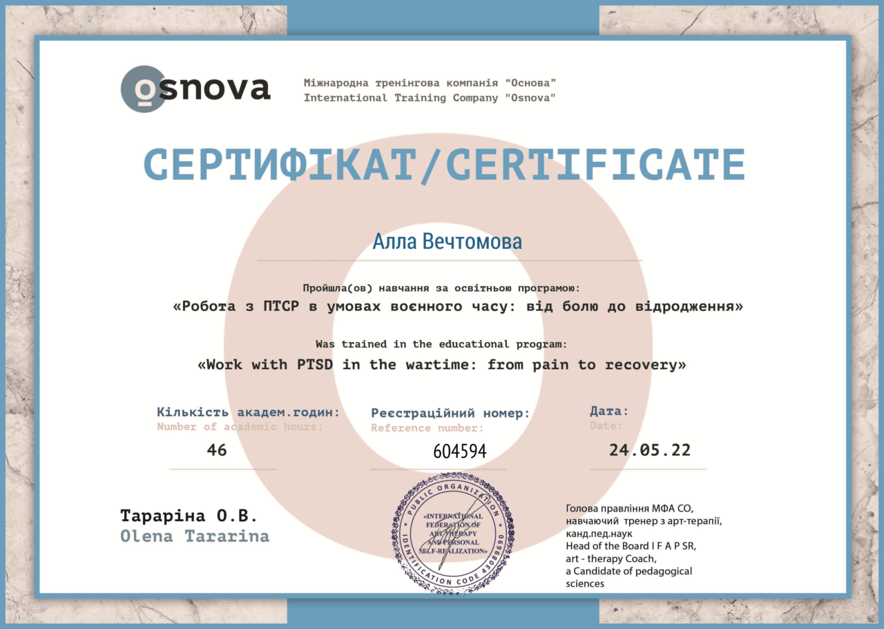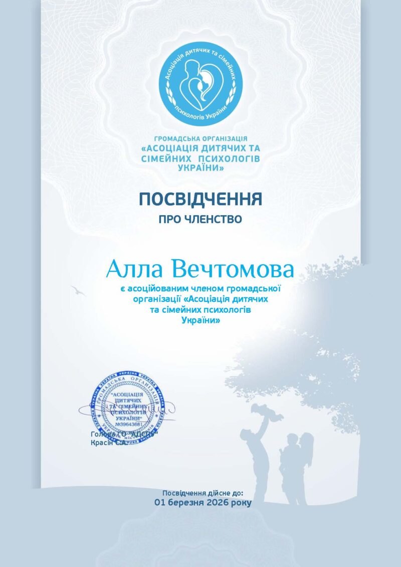 Действующий член Ассоциации детских и семейных психологов Украины и